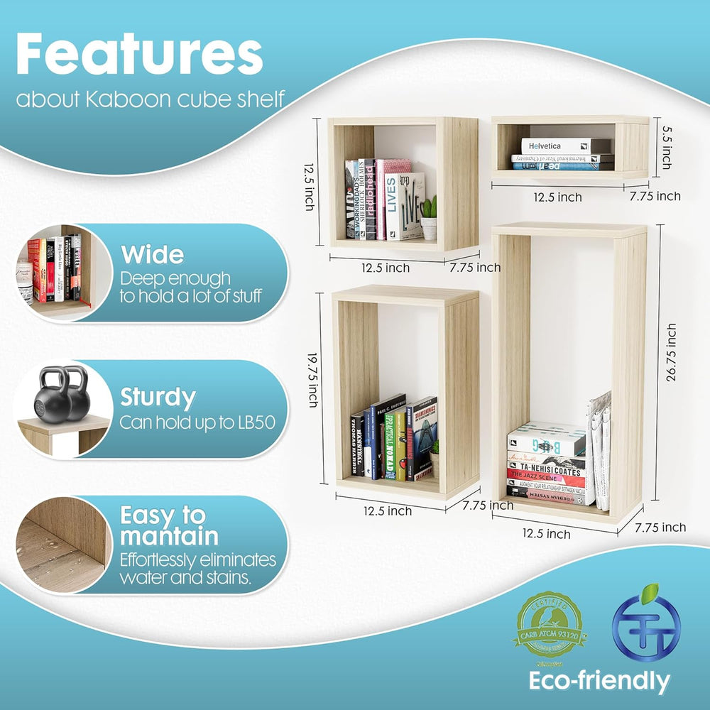 Estante Flotante Kaboon, Set de 4 Cubos, Gran Tamaño, Modelo 2023