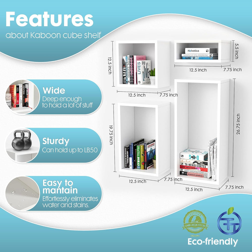 Estantería Flotante Kaboon, Set de 4 Cubos, Grande, Uso Comercial