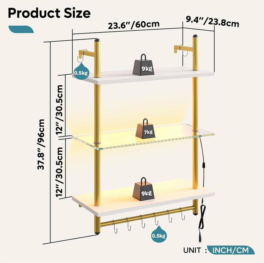 Estanterías flotantes Bestier 24” con luces LED y ganchos