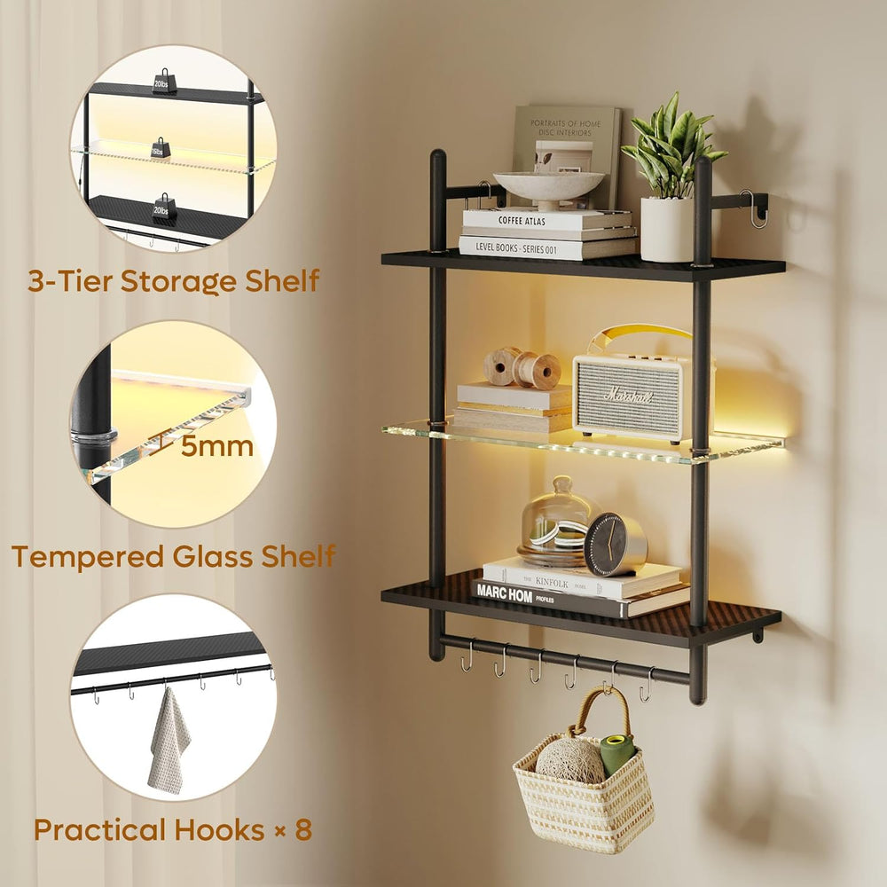 Estanterías Flotantes Bestier, 24 LED, 3 Niveles, para Pared
