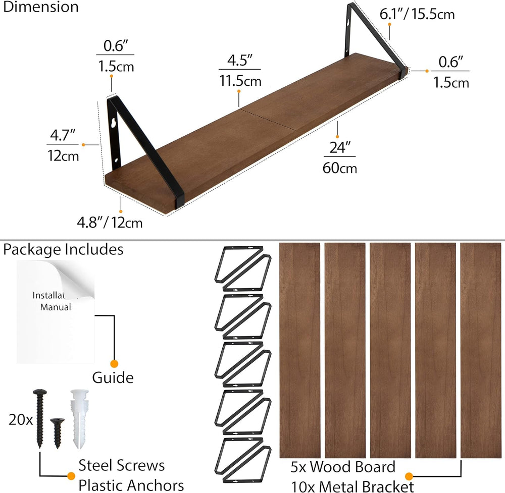 Estanterías Flotantes Wallniture Ponza, 24 Set de 5 Estantes