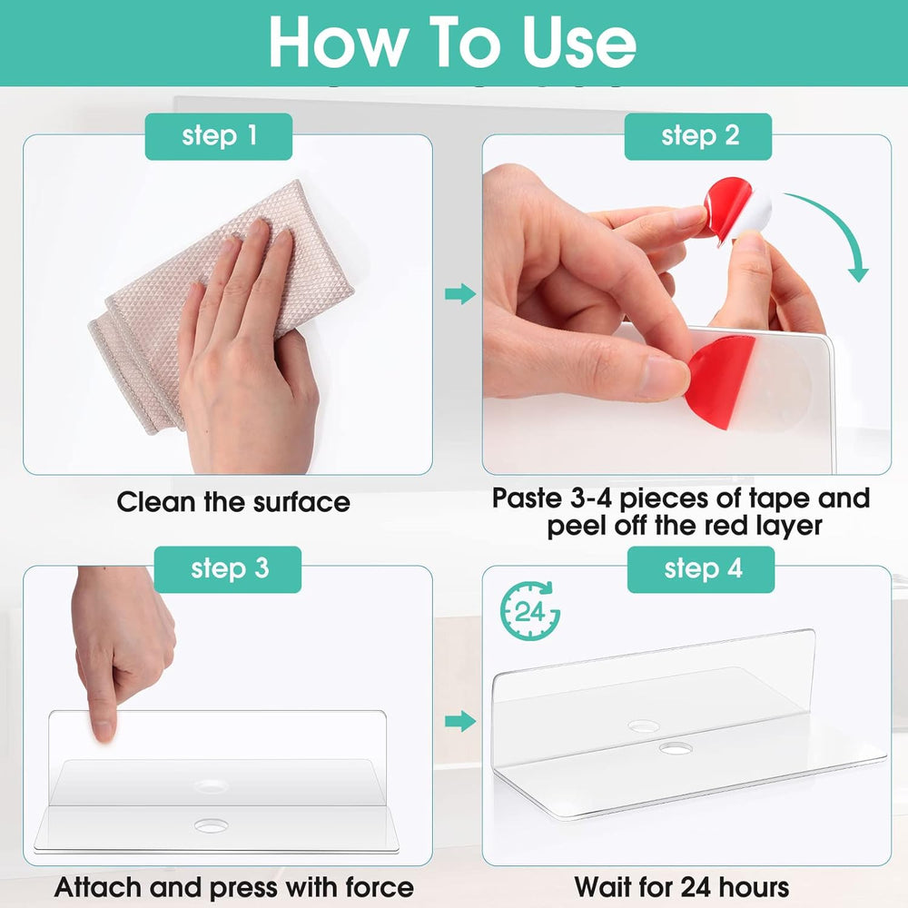 Estantes Flotantes Acrílicos Adhesivos, 9 Pulgadas, 8 Piezas