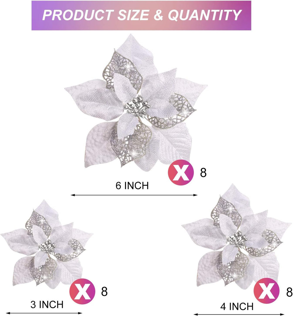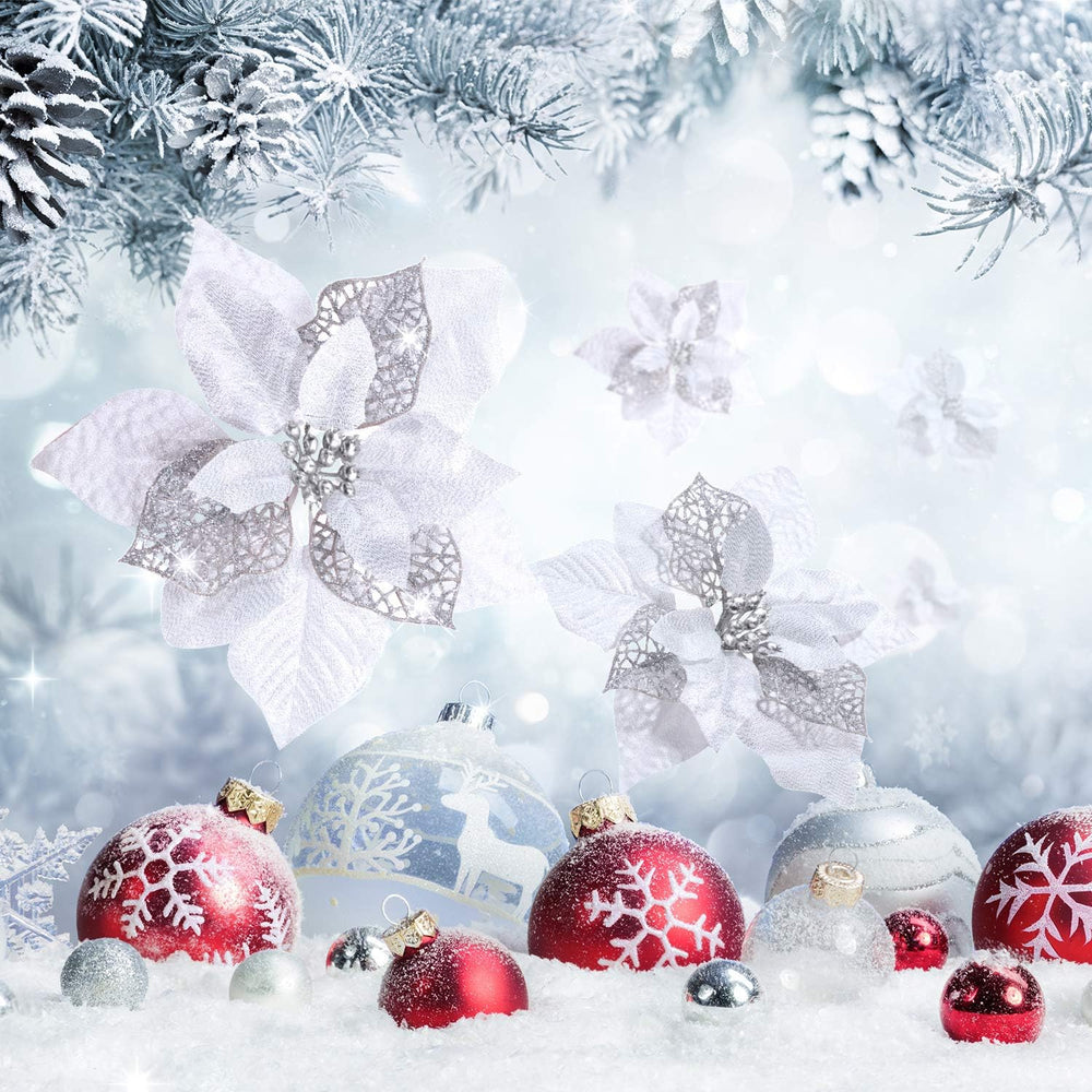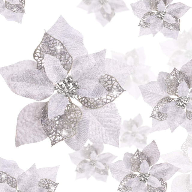 Flores Artificiales Poinsettia Glitter 36 Piezas WILLBOND
