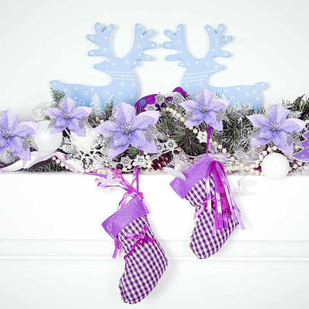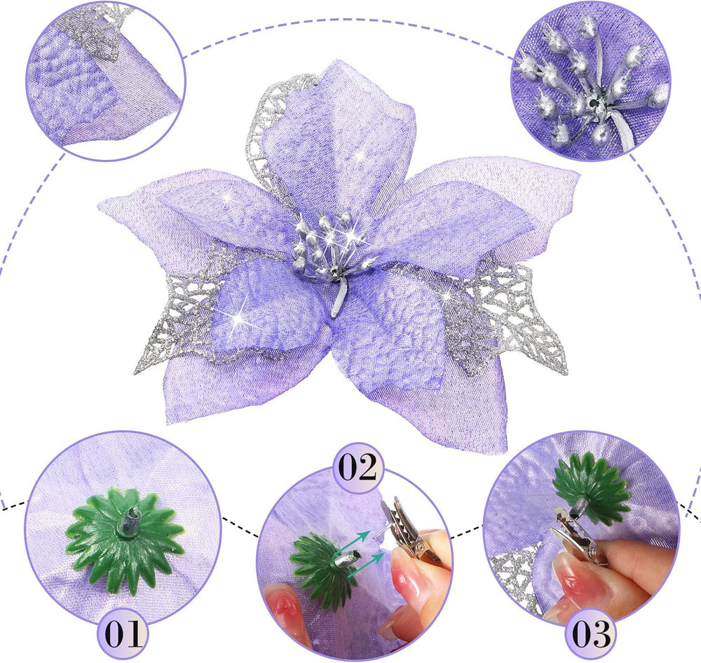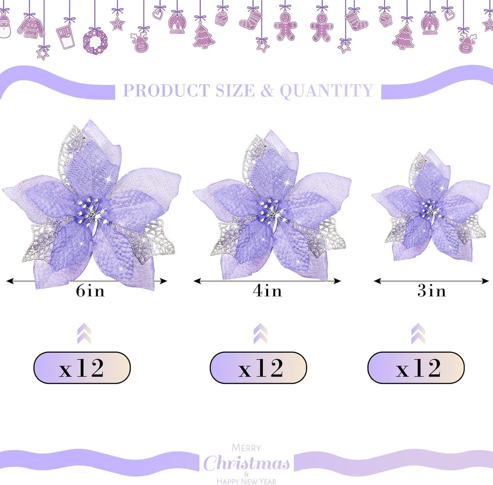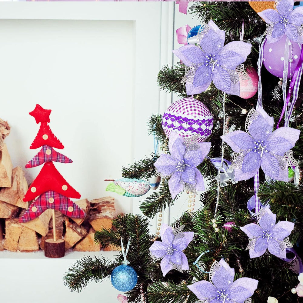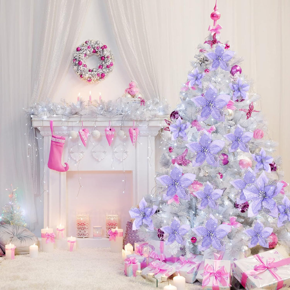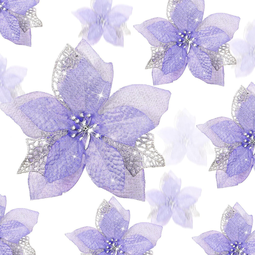 Flores Artificiales Poinsettia Glitter, WILLBOND, 36 Piezas