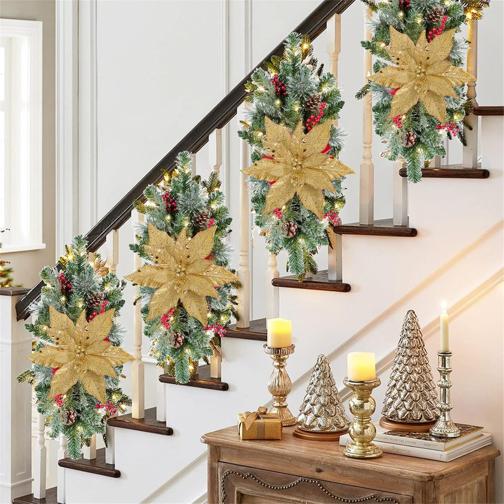 Flores Poinsettia Artificial Briful, Set de 4, 12'' Grandes