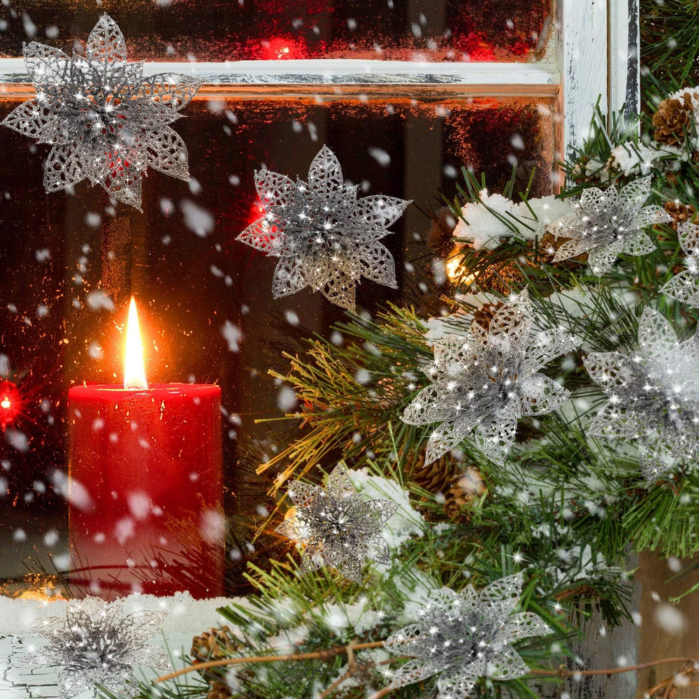 Flores Poinsettia Artificiales WILLBOND para Decoraciones Navideñas