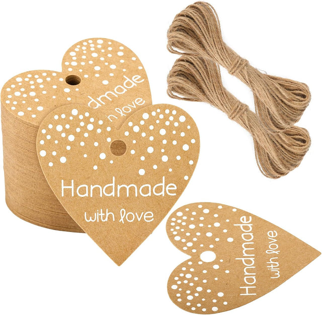 G2PLUS Etiquetas de regalo hechas a mano con cuerda, 100 u