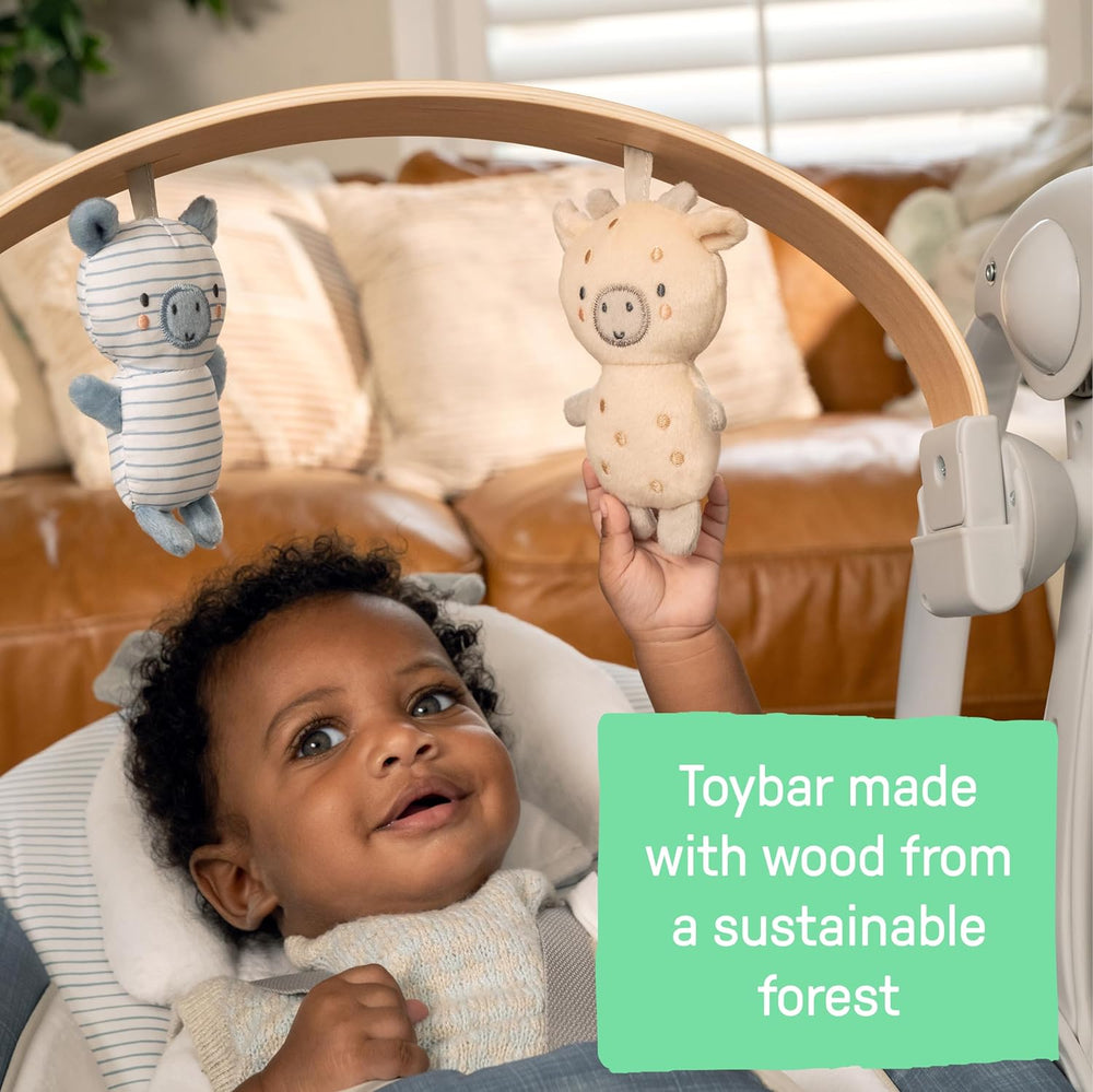 Ingenuity Swing n Go - Columpio portátil, barra de juguete de madera extraíble de origen sostenible, 5 velocidades, para edades de 0 a 9 meses, hasta 20 libras, color cambray