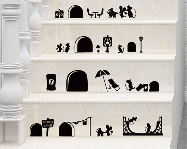 Interesante etiqueta engomada del agujero del ratón extraíble personalizada moda creativa fondo pegatinas de pared para sala de estar escaleras