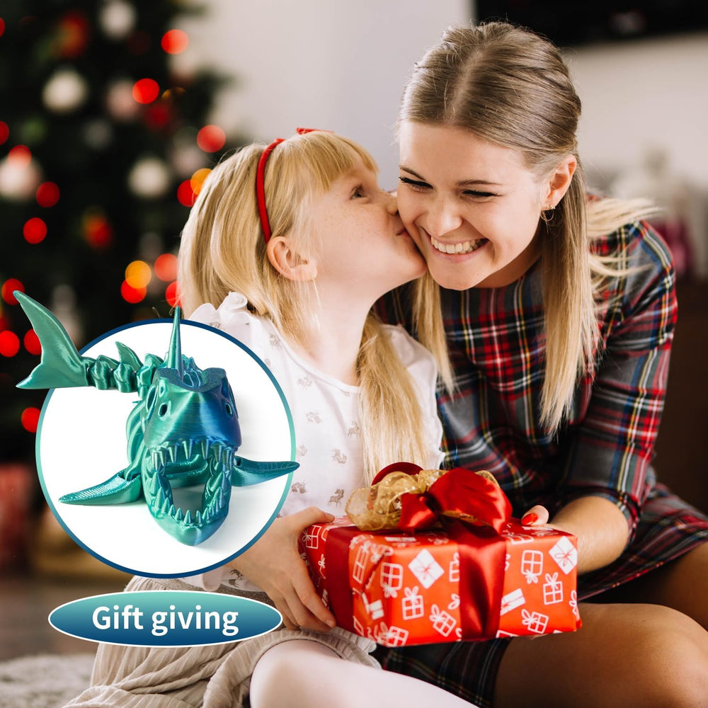 Juguete tiburón articulado 3D, diseño premium, modelo arcoíris