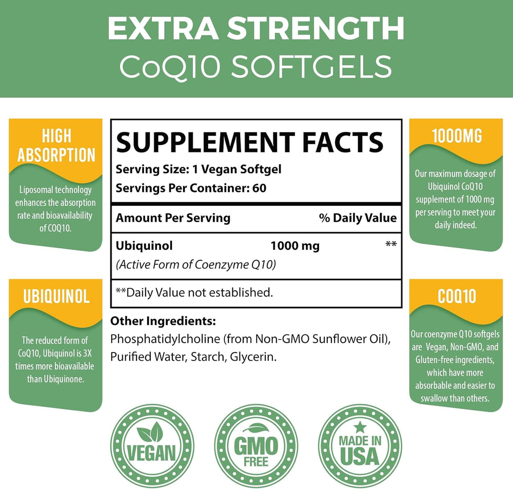 Liposomal CoQ10 1000mg Vegan Antioxidant 120 Softgels