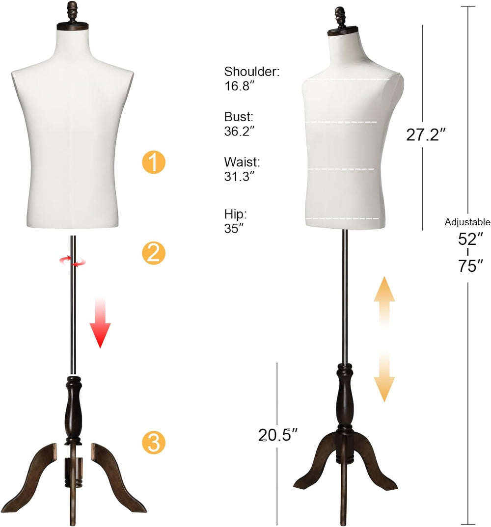 Maniquí Masculino Bonnlo con Tripié de Madera, Ajustable