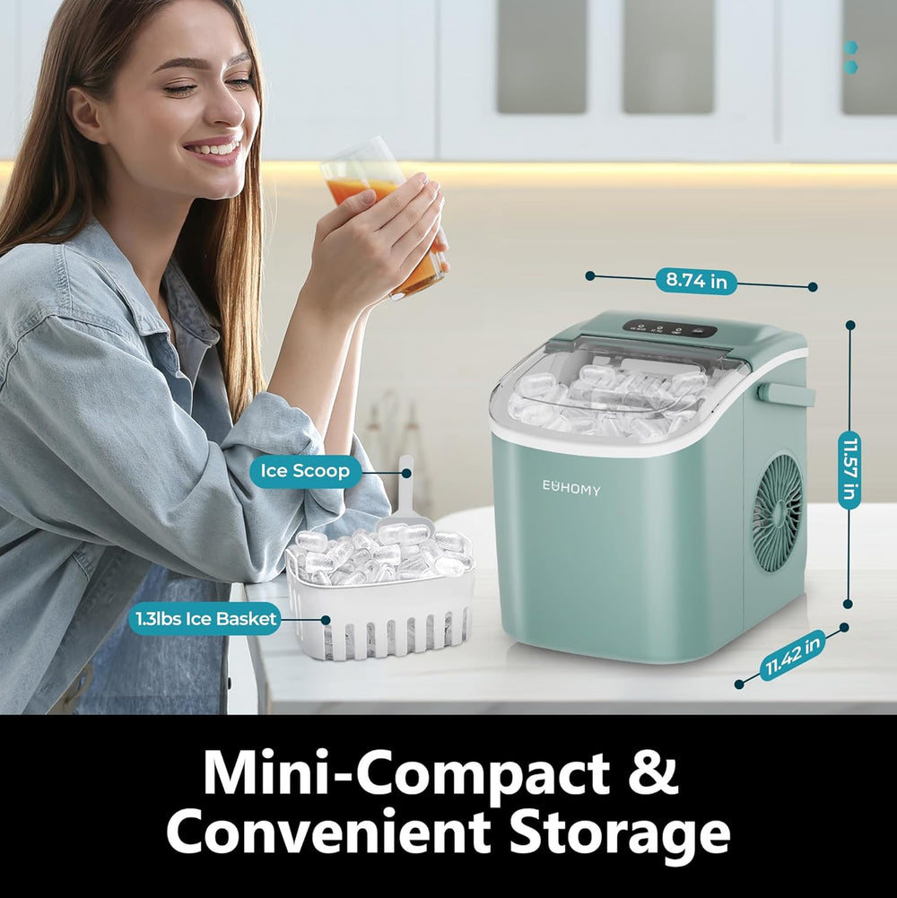 Máquina de Hielo EUHOMY, 26lbs/día, 9 cubos en 6 mins