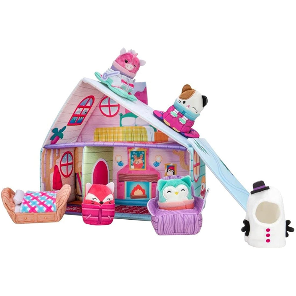 Cómoda cadena: ve a las pistas o bebe un poco de cacao en el chalet de esquí Squishville Disfraz de muñeco de nieve: vive tus recuerdos favoritos del día de nieve en el disfraz de peluche de muñeco de nieve Ranura en el techo: correa en tus esquís o snowboard y sal a las pistas... directamente desde tu techo Tamaño exclusivo: incluye Squishmallows de 2 pulg F Lla y Winston Construye tu mundo: construye el mundo de Squishville con Squishmall vehícu accesorios y juegos de felpa de 2 pulgadas.