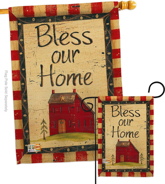 Primitive Bless Our Home Garden House - Juego de banderas de casa de jardín, granja occidental, granero americano, rústico, vaquero, rancho rural, pequeño, decorativo, para regalo, fabricado en Estados Unidos, 28 x 40 pulgadas
