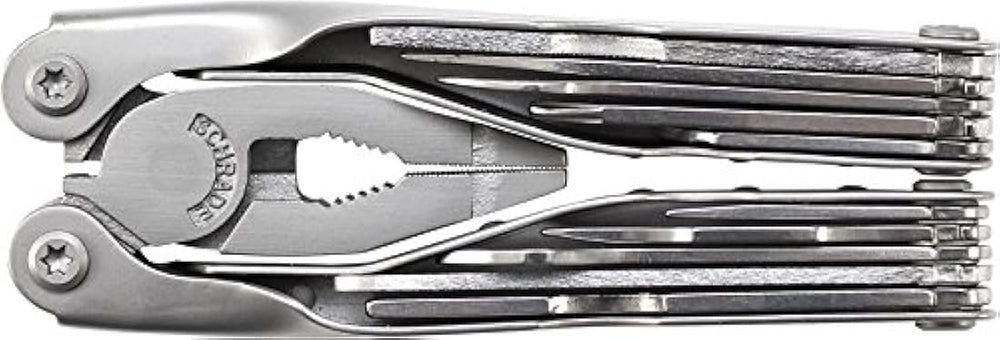 *** Características *** Dimensiones: 7.0 en la longitud total con una longitud cerrada de 4.8 en y un peso de 8,1 onzas. Duradera: la herramienta está hecha de 2Cr13 S.S fiable. Dependible: acceso rápido y fácil con la práctica funda de poliéster negro para cinturón, lo que la hace ideal para el transporte diario. Seguro: todas las herramientas están cargadas con resorte, lo que permite una apertura rápida y un bloqueo sólido cuando está en uso. Incluye: alicates de punta de aguja, alicates regulares, tornillo de banco, cortador de alambre, elevador de tapa, abrelatas, destornillador de bloqueo Phillips, escriba, punta, agujero de cuero, hoja de cuchillo de doble filo, archivo de metal. Schrade se enorgullece de crear cuchillos confiables que son perfectos para todas las aventuras al aire libre. Ya sea que esté caminando, acampando, ejecutando bushcraft o cualquier otra actividad, Schrade es el pañero de alto rendimiento que necesita.