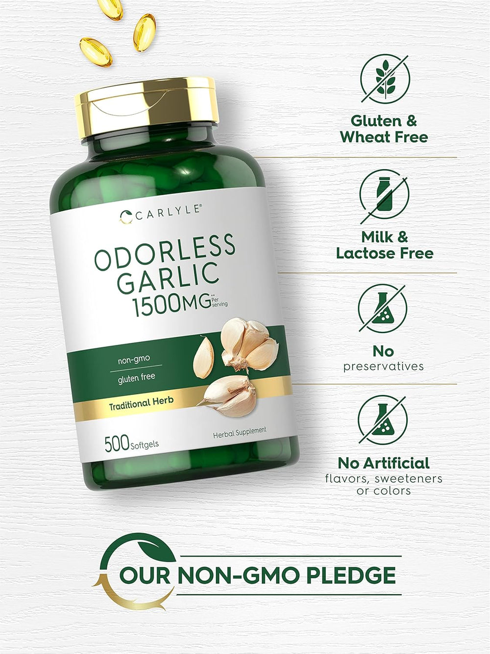 Suplemento de ajo sin olor 1500 mg 500 pastillas sin gluten