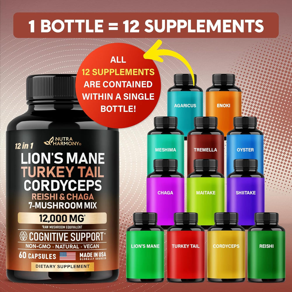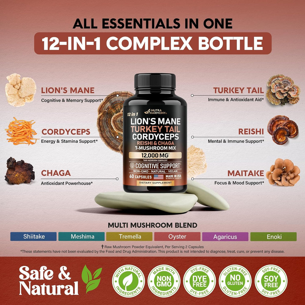 Suplemento de hongos orgánicos 12 en 1 Hecho en EE. UU