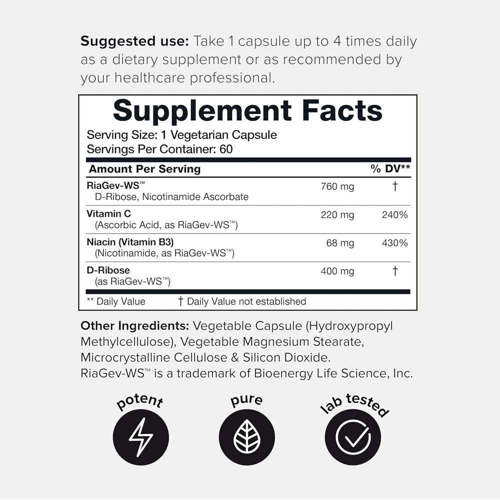 Suplemento NAD de alta potencia con RiaGev y D-Ribosa