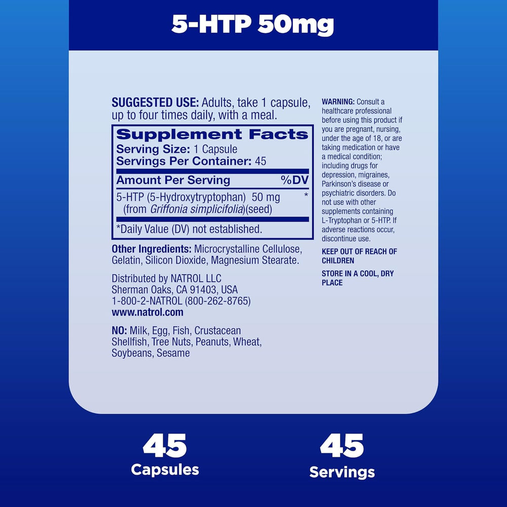 Suplemento Natrol 5-HTP 50mg, Apoyo al Ánimo, 45 Cápsulas