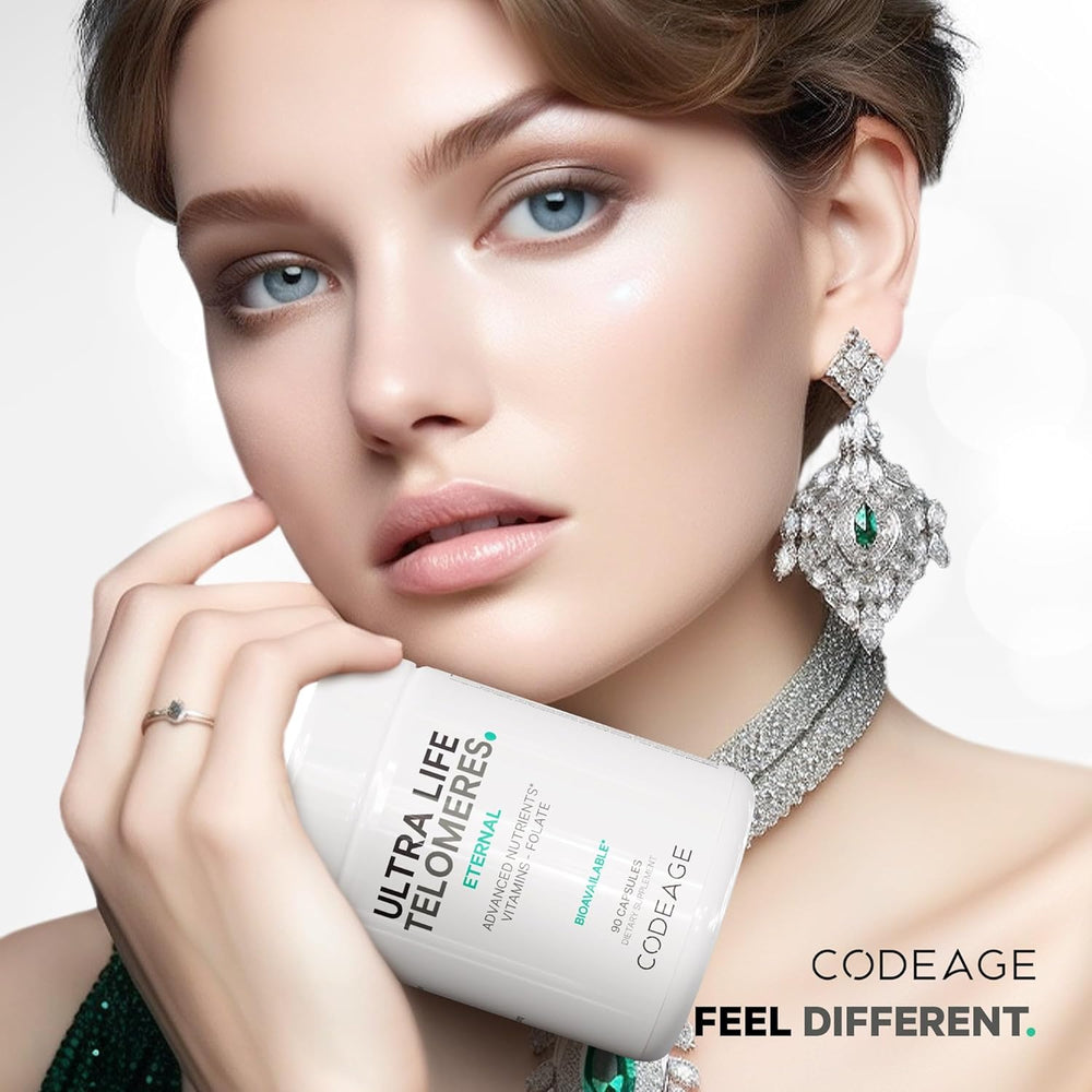 Suplemento Telómeros Codeage - 5 MTHF, B9, B12, D3, 90 cápsulas