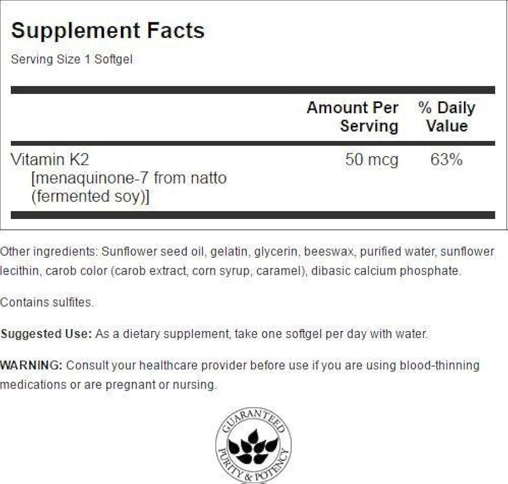 Swanson Natural Vitamina K2 (Menaquinone-7 al 100% con tela de algodón de pato de Natto) 50 mcg 30 sgels está agotado y se enviará tan pronto como vuelva a estar disponible.