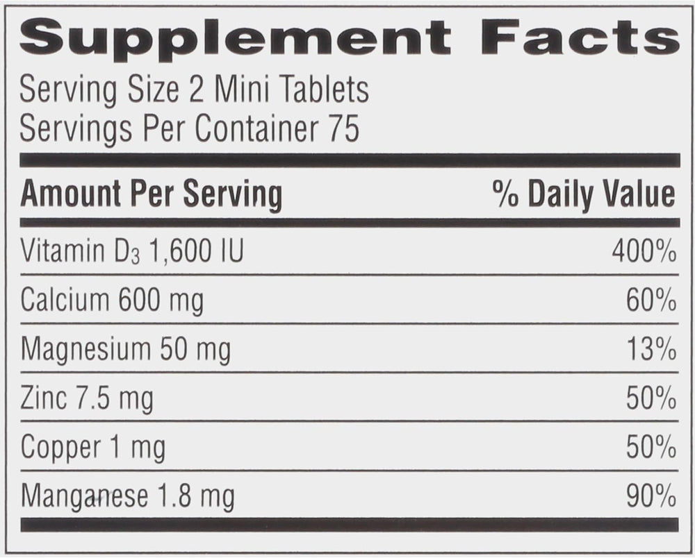 Calificar Forma del artículo Pastilla Tipo de suplemento primario Cal Vitamina D Recuento de unidades 150 unidades Sabor Sin sabor Sobre este artículo Botella de 150 unidades de Caltrate Minis 600 Plus D3 Plus Minerals Calcio y Vitamina D Suplementos Tabletas Los suplementos de apoyo óseo de doble beneficio incluyen calcio y vitamina D3 para la fuerza ósea y minerales para mayor flexibilidad 3) Caltrate El suplemento Plus Minerals incluye minerales esenciales clave z cobre y manganeso para ayudar a apoyar la producción de colágeno para facilitar lo más resistentes (2) Caltrate Los suplementos de calcio y vitamina D tienen la mayor cantidad de vitamina D3 para ayudar a tu cuerpo a maximizar la absorción de calcio 2) Caltrate Las tabletas de calcio y vitamina D3 contienen 600 mg de carbonato de calcio y 40 mcg de vitamina D3 por dos mini tabletas