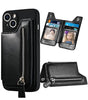 TopFunny Cartera adhesiva para funda de teléfono, tarjetero adhesivo de crédito para la parte posterior de las fundas del teléfono, funda de cuero con cremallera, compatible con iPhone, Samsung Galaxy la mayoría de los smartphones, color negro