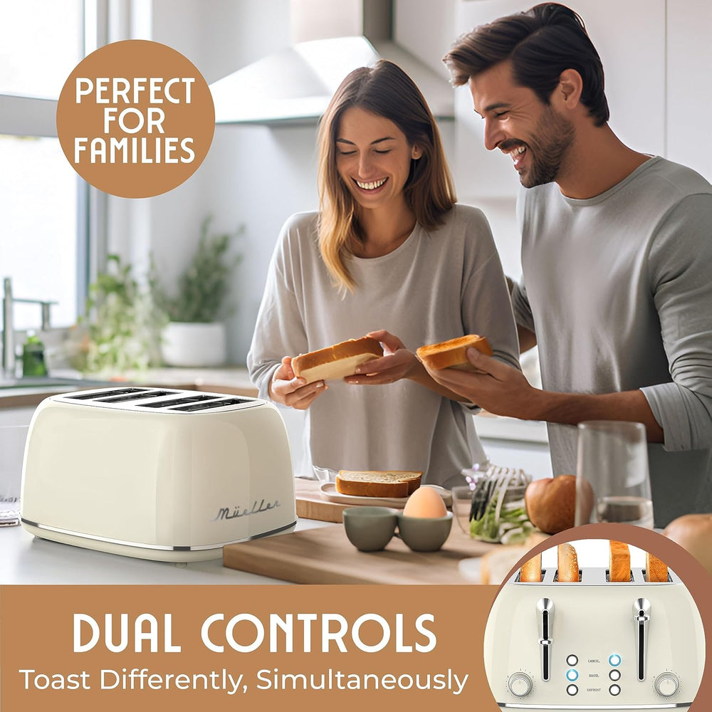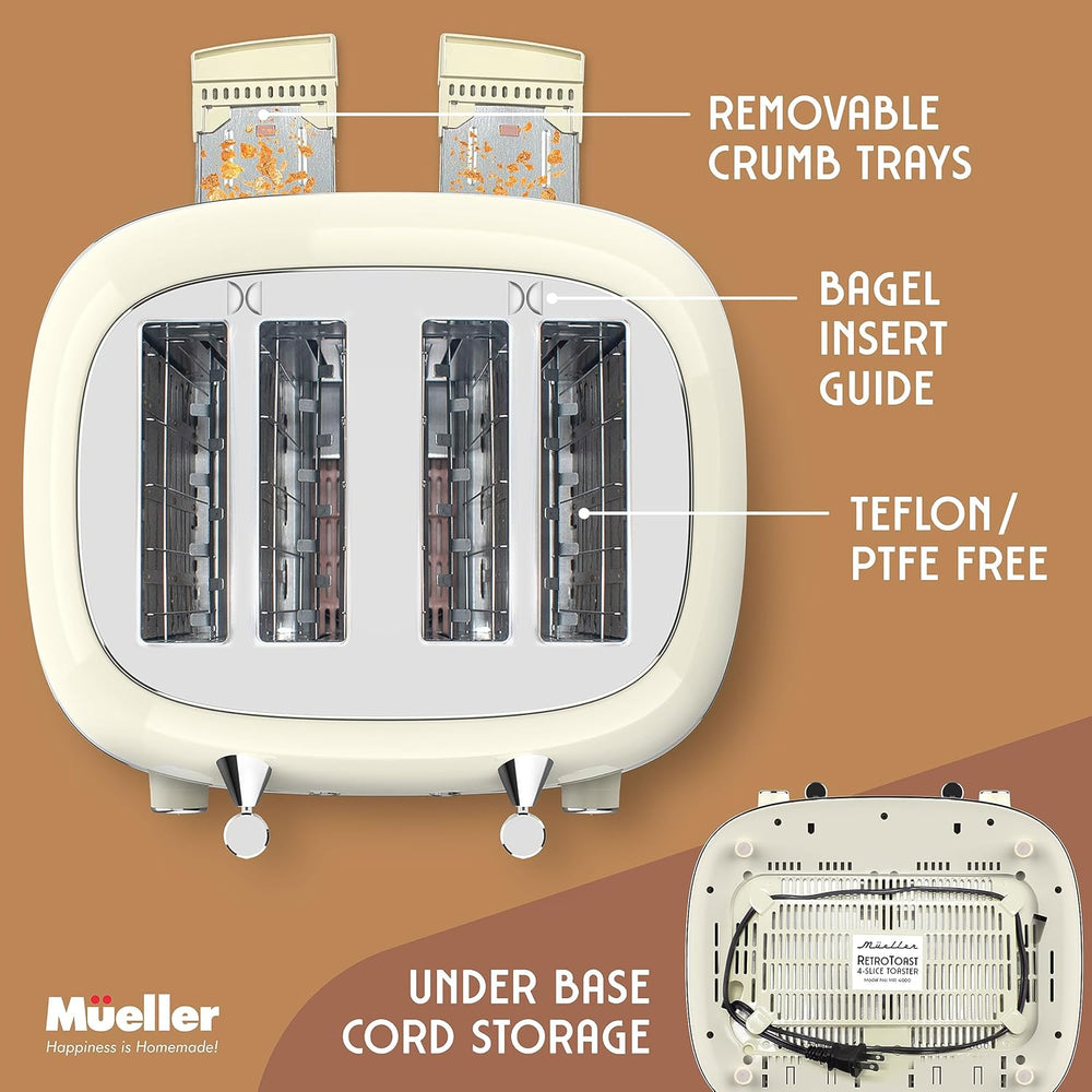 Tostadora retro de 4 ranuras 6 niveles de tostado