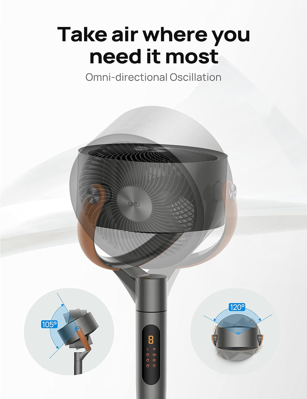Ventilador Dreo de Pie, Oscilante, 8 Velocidades, Ajustable