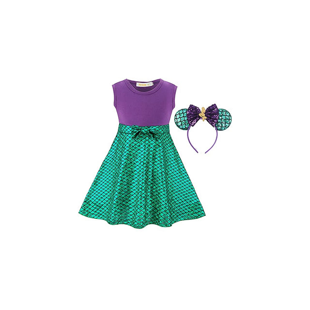 Vestido corto de sirena para niñas con diadema de orejas