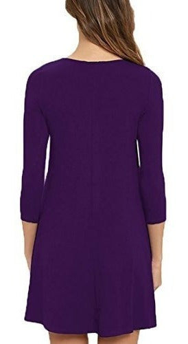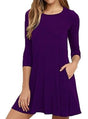 Vestido de camiseta informal con cuello redondo y mangas 3/4