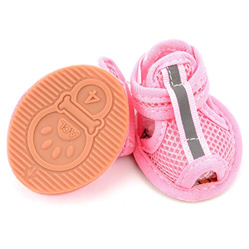 Zunea Sandalias de malla transpirable para perro, antideslizantes, protectores reflectantes ajustables para niñas, para mascotas, perros, gatos, cachorros, color rosa, 1#